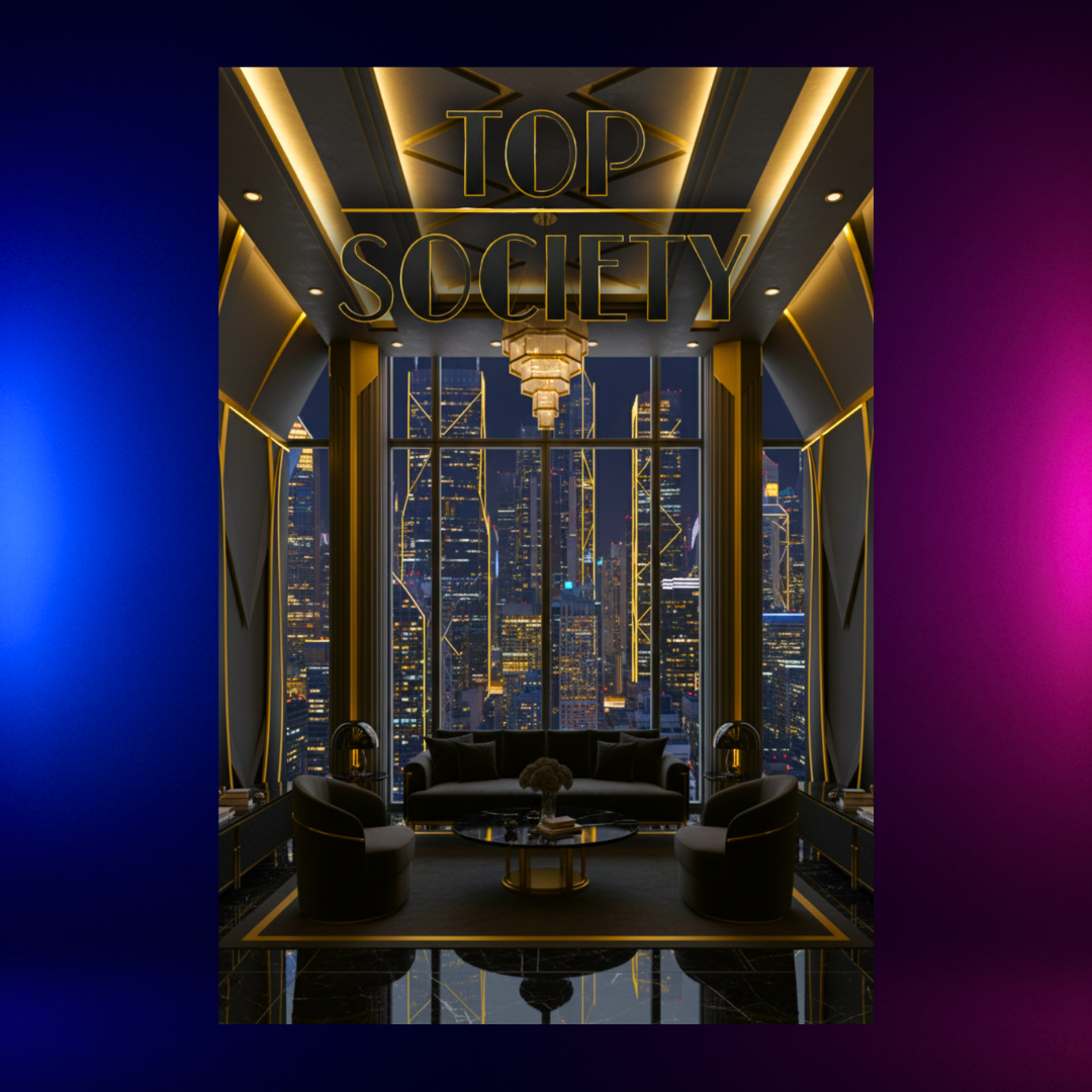 Within the glittering cities of the future, there exists a world few will ever glimpse—an echelon of influence known simply as Top Society. Its members gather in hidden penthouses, private atriums, and marble-clad halls where every surface gleams black and gold. Their symbol, a stylized crest of sharp geometric lines echoing the Art Deco age, stands as a quiet reminder of the legacy—and the expectation—of perfection. Only those who rise above the ordinary are invited into the Gilded Circle.